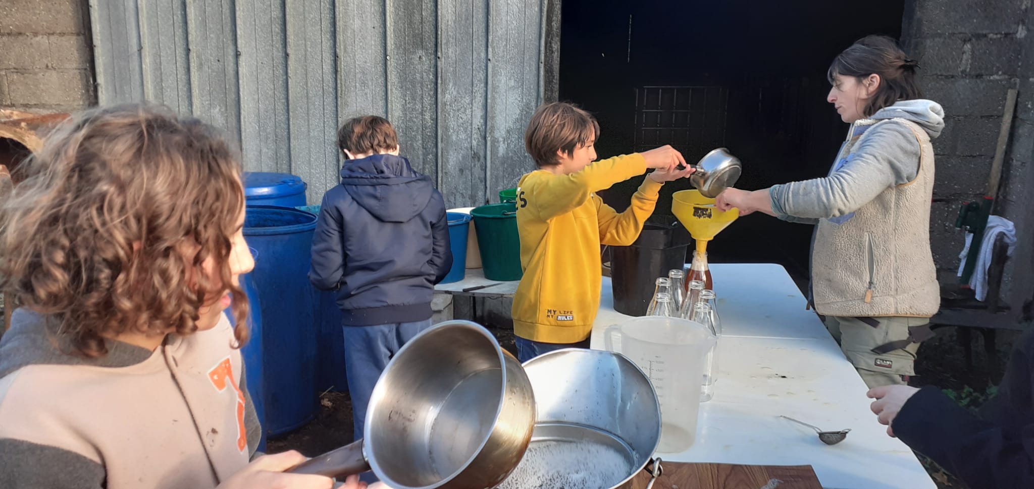 Description : Nous avons fabriqué du jus de pommes artisanal avec des pommes que nous avons nous-même récoltées à Massérac au verger de Paimbu puis nous les avons pressés. Merci aux participants : William, Emilie, Julie, César, Robin, Emeline, Lucas, Gaël et un grand merci à Michel & Marie-Thérèse pour l'accueil, la presse & la pasteurisation.